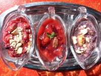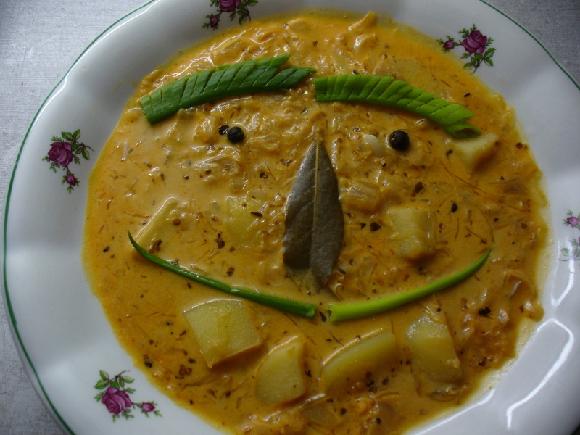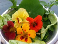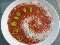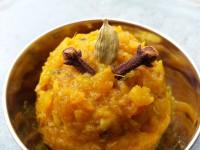Sabji z mrkve a dýně hokkaido, rýže, mrkvová indická krémová polévka, salát s jedlými květinami a listovou zeleninou ze zahrádky (salát, rukola, špenát apod.) pečivo a ovoce. K pečivu místo pomazánky sladké ovocné rozvary, švestkový a jablečný s bylinkami.